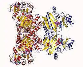 In enzymology, an acetate—CoA ligase (ADP-forming) (EC 6.2.1.13) is an enzyme that catalyzes the chemical reaction