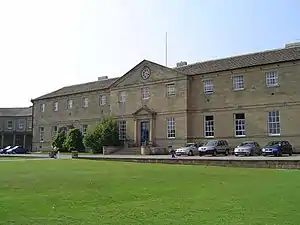 The school was opened by John Fothergill, described in the book as an "eminent physician of London and a man of much influence in the Society of Friends".[42] Originally built as a branch of the Foundling Hospital in London, work started in 1757 and cost about £13,000.[41] The governors of the "Hospital for the Maintenance and Education of Exposed and Deserted Young Children" had already established branches in Shrewsbury, Chester and Westerham. Their move to Ackworth was in view of the "great advantages from having one amongst the active and enterprising people of the northern counties."[43] The hospital eventually closed in 1773 and remained empty for several years, during which time it seems to have avoided being turned into a "lunatic asylum" or "being sold and taken down for the materials."[41] It was on hearing that the building may be "disposed of" that Fothergill bought it along with 85 acres of surrounding lands for £7,000. This purchase in 1777 was fully approved by the Society of Friends in 1778[42] and the school set up in 1779.[44] Fothergill died in 1780, by which time 80 girls and 150 boys were being taught there.[45]