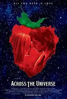 Across the Universe is a 2007 jukebox musical romantic drama film directed by Julie Taymor, centered on songs by the Beatles. The script is based on an original story credited to Taymor, Dick Clement, and Ian La Frenais, and based on the song of the same name by Lennon–McCartney. It incorporates 34 compositions originally written by members of the Beatles. The film stars Evan Rachel Wood, Jim Sturgess, Joe Anderson and T.V. Carpio, and introduces Dana Fuchs and Martin Luther McCoy as actors. Cameo appearances are made by Bono, Eddie Izzard, Joe Cocker, and Salma Hayek, among others.