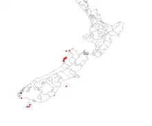 - ↑ de Lange, P.J.; Rolfe, J.R.; Barkla, J.W.; Courtney, S.P.; Champion, P.D.; Perrie, L.R.; Beadel, S.M.; Ford, K.A.; Breitwieser, I.; Schönberger, I.; Hindmarsh-Walls, R.; Heenan, P.B.; Ladley, K. (1 May 2018). "Conservation status of New Zealand indigenous vascular plants, 2017" (PDF). New Zealand Threat Classification Series. 22: 54. OCLC 1041649797.