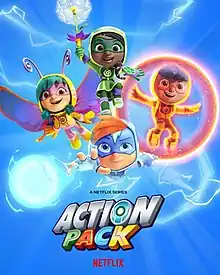 Action Pack[2] is a preschool computer-animated children's streaming television series developed by Shea Fontana for Netflix. Created by William Harper, the series premiered on January 4, 2022.[3] A second and final season was released on June 6, 2022.[4] A special, titled The Action Pack Saves Christmas, was released on November 28, 2022.
