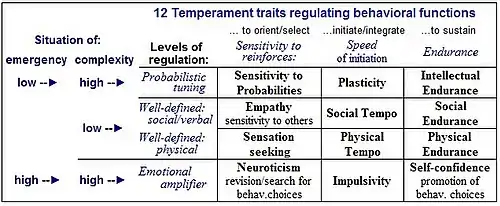 - ↑ Trofimova, IN; Robbins, TW (2016). "Temperament and arousal systems: a new synthesis of differential psychology and functional neurochemistry". Neuroscience and Biobehavioral Reviews. 64: 382–402. doi:10.1016/j.neubiorev.2016.03.008. hdl:11375/26202. PMID 26969100. S2CID 13937324.