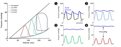 As the level of support increases, aortic pressure is maintained independent of ventricular function. Perfusion pressure is uncoupled from heart function (1-4).[2]