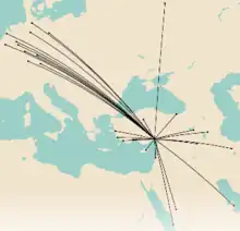 - ↑ "Flights to Izmir". corendonairlines.com. Archived from the original on 2019-03-21. Retrieved 2019-11-25.