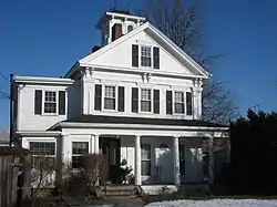 The 2+1⁄2-story wood-frame house was built in the first half of the 19th century for Addison Hill, whose family dominated the upland area of Arlington in that period. The house is an excellent local example of transitional Greek Revival-Italianate styling. Its basic massing is Greek Revival, as is its front porch, but its eaves have double brackets typical of Italianate styling, and the cupola is also a distinctive Italianate touch.[2]