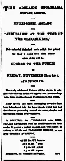 8. 1 2 3 4 "The Cyclorama Jerusalem at the Time of the Crucifixion". The South Australian Chronicle. 6 December 1890. Retrieved 17 March 2015.
