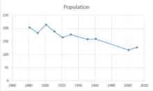 Between 1881 and 2001 the population fluctuated, but reduced from 204 to 118. Census data shows a peak population of 215 in 1901. Since 2001, with its lowest point of 118 residents, the population rose, and by 2011 was 128.[2]