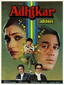 Adhikar (transl. Right) is a 1986 Indian Hindi-language film starring Rajesh Khanna and Tina Munim. It is about struggles of a father to bring up his child while the rich mother has walked out of his life.