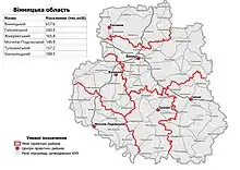 - Khmilnyk (Хмільницький район), the center is in the city of Khmilnyk;