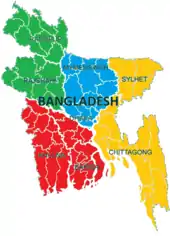 | Sylhet | 4 | Habiganj, Moulvibazar, Sunamganj, Sylhet |