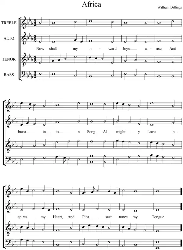 "Africa" is an 18th-century hymn tune by American choral composer William Billings, who worked in New England.