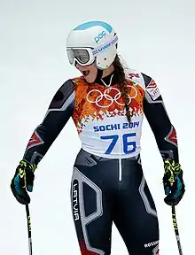 Agnese Āboltiņa (born 7 February 1996) is a Latvian alpine skier. She was born in Riga. She competed at the FIS Alpine World Ski Championships 2013 in Schladming, and at the 2014 Winter Olympics in Sochi, in giant slalom, slalom and super-G.[1] She placed 31st in super-G and 37th in slalom at the 2014 Olympics.[2]