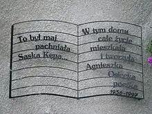 Commemorative plaque at Osiecka's home in Warsaw