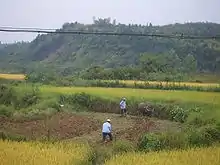 Excavations at Kuahuqiao, the earliest known Neolithic site in eastern China, have documented rice cultivation 7,700 years ago.[5] Approximately half of the plant remains belonged to domesticated japonica species, whilst the other half were wild types of rice. It is possible that the people at Kuahuqiao also cultivated the wild type.[3] Finds at sites of the Hemudu Culture (c. 5500-3300 BCE) in Yuyao and Banpo near Xi'an include millet and spade-like tools made of stone and bone. Evidence of settled rice agriculture has been found at the Hemudu site of Tianluoshan (5000-4500 BCE), with rice becoming the backbone of the agricultural economy by the Majiabang culture in southern China.[6] According to the Records of the Grand Historian some female prisoners in historic times were given the punishment to be "grain pounders" (Chinese: 刑舂) as an alternative to more severe corporal punishment like tattooing or cutting off a foot. Some scholars believe the four or five year limits on these hard labor sentences began with Emperor Wen's legal reforms.[7]