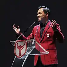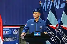 Agus Harimurti Yudhoyono (born 10 August 1978), more commonly referred to as AHY, is an Indonesian politician and former army major who is currently serving as the leader of the Democratic Party. Serving in the army from 2000 until 2016, he is the executive director of the Yudhoyono Institute and founder of the Agus Harimurti Yudhoyono Foundation. He is the son of former Indonesian president Susilo Bambang Yudhoyono, more commonly known as SBY.[1][2]