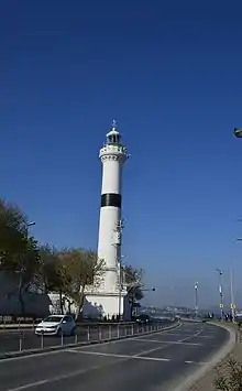 The Ahırkapı Feneri, a historical lighthouse still in use, is located at the southern Seraglio Point on the Rumelian coast of Bosporus' south entrance, in Ahırkapı neighborhood of Istanbul's Fatih district, Turkey.[1] It is across from the Kadıköy İnciburnu Feneri, which is on the Anatolian coast of the strait at a distance of 1.5 nmi (2.8 km). A line connecting the two lighthouses marks the southern boundary of the Port of Istanbul.[3]