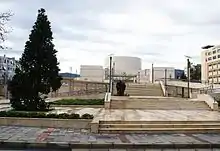 The Ahmed Adnan Saygun Arts Center (Turkish: Ahmed Adnan Saygun Sanat Merkezi) is situated in the Konak district of İzmir, Turkey. It is named after the composer Ahmet Adnan Saygun and was opened to public at December 27, 2008, by Yunus Emre Oratorio's concert. The Center hosts a variety of concerts and festivals. The Ahmed Adnan Saygun Arts Center is accessible via the Ahmed Adnan Saygun Sanat Merkezi stop of the Konak Tram line.