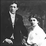 Harold McPherson followed her to bring her home but changed his mind after seeing her preaching. He joined her in evangelism, setting up tents for revival meetings and preaching.[24] The couple sold their house and lived out of their "gospel car". Despite his initial enthusiasm, Harold began leaving the crusade for long periods of time in the late 1910s. Initially attempting to launch his own career as a traveling evangelist, he eventually returned to Rhode Island and his secular job. The couple were divorced in 1921.[25]