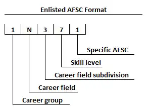 The enlisted AFSC consists of five alphanumeric characters: