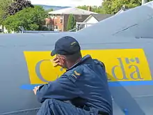 A CFSATE student applying aircraft stencils