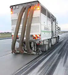 Airfield rubber removal, also known as runway rubber removal, is the use of high pressure water, abrasives, chemicals and other mechanical means to remove the rubber from tires that builds up on airport runways. In the United States, the Federal Aviation Administration (FAA) specifies friction levels for safe operation of planes and measures friction coefficients for the evaluation of appropriate friction levels. Individual airports incorporate rubber removal into their maintenance schedules based on the number of take offs and landings that each airport experiences.