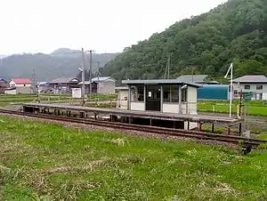 Due to damage caused by torrential rainfall on July 30, 2011, services on the section of line between Aizu-Kawaguchi and Tadami, which includes this station were replaced by a provisional bus service. The closed section resumed operations on 1 October 2022.[2]