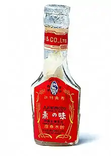 Ajinomoto Co., Inc. was created in 1908 as a subsidiary of Suzuki Pharmaceutical Co., Ltd., which was founded in May 1907 by Saburosuke Suzuki II and Kikunae Ikeda. Ajinomoto was created to let Ikeda, a professor at Tokyo Imperial University, sell monosodium glutamate (MSG) seasoning made from wheat that he invented and patented. He created the seasoning after discovering that MSG was the source of a flavor that he called umami. In April 1909, Ajinomoto presented Ikeda's seasoning under the brand name "AJI-NO-MOTO" at a new product exhibition event in Tokyo,[4] and began selling the product the next month.[5] Ajinomoto primarily marketed the seasoning to housewives by using their trademark, a housewife in an apron, in newspaper advertisements, on signboards, and on-ground stamps.[2]: 38 [5]