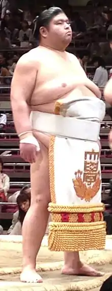 Akiseyama Mitsuhiko (Japanese: 明瀬山 光彦, born July 18, 1985 as Mitsuhiko Fukao (深尾 光彦, Fukao Mitsuhiko)) is a former Japanese professional sumo wrestler from Kasugai, Aichi. An amateur sumo competitor while studying at Nihon University, he made his professional debut in January 2008. He has two lower-division championships in jonokuchi and makushita, and reached the top makuuchi division in March 2016. His highest rank was maegashira 12. He wrestled for Kise stable, where he now coaches under the name of Izutsu.