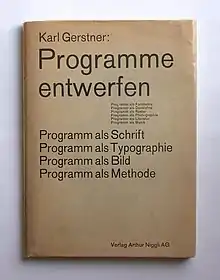 In the post-war period and particularly in Switzerland a revival in Akzidenz-Grotesk's popularity took hold, in what became known as the "Swiss International Style" of graphic design. This style often contrasted Akzidenz-Grotesk with photographic art, and did not use all caps as much as many older posters.[67] Graphic designers of this style such as Gerstner, Josef Müller-Brockmann and Armin Hofmann all used Akzidenz-Grotesk heavily.[68][69][70] Like Tschichold, Gerstner argued that the sans-serifs of the nineteenth century were more "matter-of-fact" (German: Selbstverständlichkeit) than the more "personal" recent sans-serifs of the previous decades.[14][15] Art historian Stephen Eskilson wrote that they "conveyed the functionalist ethos without appearing too stylised...in the manner of the more geometrically pure types."[67] Berthold suggested in the 1980s that the originator of this use of Akzidenz-Grotesk in Zürich was German-born designer Anton Stankowski.[71]