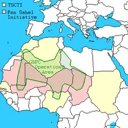 Al-Qaeda[lower-alpha 1] is a pan-Islamist militant organization led by Sunni Jihadists who self-identify as a vanguard spearheading a global Islamist revolution to unite the Muslim world under a supra-national Islamic state known as the Caliphate.[73][74] Its members are mostly composed of Arabs, but also include other peoples.[75] Al-Qaeda has mounted attacks on civilian, economic and military targets of America and its allies; such as the USS Cole bombing, 1998 US embassy bombings and the September 11 attacks. The organization is designated as a terrorist group by NATO, UN Security Council, the European Union, and various countries around the world.