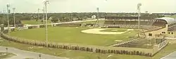 Construction on Al López Field was not quite complete on October 6, 1954, when it was officially dedicated as part of "Al López Day" in Tampa.[3] It was, however, ready for spring training in March 1954, when the Chicago White Sox used the place as a training base while playing exhibition games at Plant Field.[4] After the White Sox went north for the beginning of the regular season, their new Florida State League Class-A team, the Tampa Tarpons, took the field.[5] Al López became the White Sox manager in 1957, putting him in the unusual position of managing in his hometown in a stadium that bore his name. During one ballgame, Lopez got into an argument with umpire John Stevens and was ejected. As Lopez said later, "The umpire threw me out of my own ballpark!"[6]