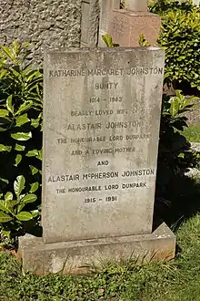 Following Bunty's death in 1985 he married Kathleen Elizabeth Sarah Welsh (1919–2003) of County Monaghan in Ireland, widow of John C Macfie of 17 Heriot Row.[6][7]