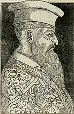 During the First Siege of Krujë, the Venetian merchants from Scutari sold food to the Ottoman army and those of Durazzo supplied Skanderbeg's army.[76] An angry attack by Skanderbeg on the Venetian caravans raised tension between him and the Republic, but the case was resolved with the help of the bailo of Durazzo who stopped the Venetian merchants from any longer furnishing the Ottomans.[75] Venetians' help to the Ottomans notwithstanding, by September 1450, the Ottoman camp was in disarray, as the castle was still not taken, the morale had sunk, and disease was running rampant. Murad II acknowledged that he could not capture the castle of Krujë by force of arms before the winter, and in October 1450, he lifted the siege and made his way to Edirne.[75] The Ottomans suffered 20,000 casualties during the siege, and many more died as Murad escaped Albania.[77] A few months later, on 3 February 1451, Murad died in Edirne and was succeeded by his son Mehmed II (r. 1451–1481).[78]