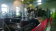 The engine house was built in 1903 to house a steam winder engine (which had previously been in use elsewhere). It is Grade II listed.[4] The engine, which remained in regular use until the pit's closure, is still in situ. It is an 1888 horizontal, simplex (i.e. non-compound) steam engine built by the Grange Iron Company of Durham City. The same company oversaw the re-siting of the engine in 1903, and they took the opportunity then of adding their latest patent steam expansion valves to maximize the engine's efficiency.