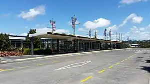Albany busway station is a bus station on Auckland's Northern Busway in New Zealand. It is located near Oteha Valley Road in the suburb of Albany.[1] It has shelters, electronic real-time information on each platform, and park and ride parking.[2] The busway lanes have extended to this station from the south since May 2022.