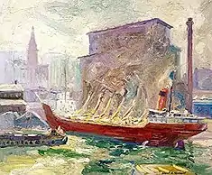 Albert Henry Krehbiel (November 25, 1873 – June 29, 1945), was the most decorated American painter ever at the French Academy, winning the Prix De Rome, four gold medals and five cash prizes. He was born in Denmark, Iowa and taught, lived and worked for many years in Chicago. His masterpiece is the programme of eleven decorative wall and two ceiling paintings / murals for the Supreme and Appellate Court Rooms in Springfield, Illinois (1907–1911).[1] Although educated as a realist in Paris, which is reflected in his neoclassical mural works, he is most famously known as an American Impressionist. Later in his career, Krehbiel experimented in a more modernist manner (a style that became known as "synchromism").[2][3][4][5][6]