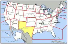 The mission of the AADS was to provide air defense for New Mexico, most of Texas, southern Colorado, and the Oklahoma Panhandle.[5] The organization provided command and control over three fighter-interceptor squadrons: the 58th at Walker AFB,[6] the 93d at Kirtland,[7] and the 331st at Webb AFB;[8] as well as nine aircraft control and warning squadrons: the 683d, 685th, 686th, 687th, 688th, 697th, 732d, 768th, and 769th, which operated radar stations in New Mexico and Texas.[9][10][11]