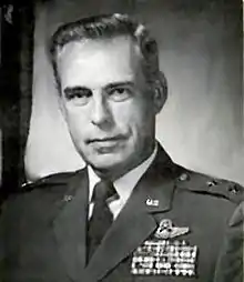 His military decorations and awards include the Distinguished Service Medal, the Legion of Merit with oak leaf cluster, Distinguished Flying Cross, Meritorious Service Medal, Air Medal with three oak leaf clusters, Air Force Commendation Medal with two oak leaf clusters, Army Commendation Medal, Distinguished Unit Citation Emblem with oak leaf cluster, and the Armed Forces Honor Medal, First Class Order, from the Republic of Vietnam. He was a command pilot with more than 8,000 flying hours. In 1977 he received the Order of the Sword.[1] He was promoted to the grade of major general effective June 20, 1973, with date of rank July 1, 1970. He retired on February 1, 1981, and died on April 16, 2015.[2]