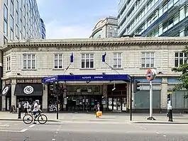Aldgate is a London Underground station near Aldgate in the City of London. The station is on the Circle line between Tower Hill and Liverpool Street, and is the eastern terminus of the Metropolitan line. It is in Travelcard Zone 1.[7]