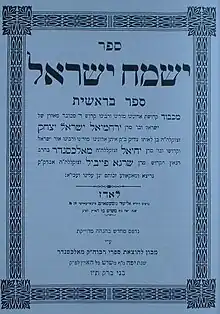 - Yismach Yisroel - The fundamental text of Aleksander ideology. Written by Yerachmiel Dancyger, including many of the teachings of the first Rebbe R' Yechiel. Completed after his death by his brother Shmuel Zvi. (Lodz, 1911)