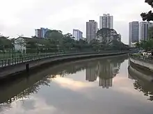 Alexandra Canal is one of the upper reaches of the Singapore River and Sungei Pandan, becoming the Singapore River after Kim Seng Bridge.[1] The 1.2 km long canal stretches from Tanglin Road to Delta Road. Reconstruction of Alexandra Canal between Tanglin Road and Kim Seng Road took place from 1997 to 2008 to improve the structural condition of the canal and to alleviate flooding in the catchment. In 2011, a 250-metre stretch of Alexandra Canal, between Zion Road and Kim Seng Road, was reconstructed to improve drainage and prevent floods.[2] A 200m stretch of the open waterway near Tanglin Road was decked over to create a water cascade and water play area. The deck also provides a point from which the public can have a view of the waterway downstream.