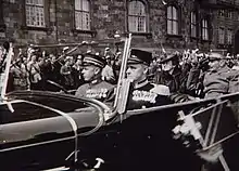 Her rejection of Major General Kurt Himer, Chief of Staff to General Kaupisch on 9 April 1940 became a symbol for her loyalty toward Denmark before her birth country Germany.[7] When General Himer asked for an audience with the monarch, Christian was persuaded to receive him by his daughter-in-law as he would any other, which was supported by Alexandrine.[8] He asked to do so alone, but Alexandrine told him she would interrupt them. When the General was about to leave, she came in; and when he greeted her, she said: "General, this is not the circumstance in which I expected to greet a countryman."[8]