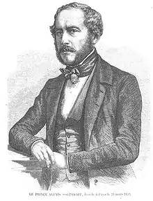 Alexis's early days are somewhat of a mystery. He grew up in St Petersburg and at the age of eighteen joined the diplomatic services with the Russian State Board (Collegium) for Foreign Affairs in Moscow. By the age of 23 he was with the Russian Foreign Service, first in Constantinople, then in Athens, later in London, Florence, Rome, and Teheran.[1] In 1840 Alexis retired and moved to Paris where he planned his voyages to India. He ended up making two voyages there (1841–43 and 1844–46), and achieving the sobriquet 'The Indian' from the Russian and French aristocracy. In 1849 he published a selection of his letters in French accompanied by his drawings, which became very well known in Europe "Lettres sur L’Inde". Paris, 1848).[2] In 1851 the book was translated into Russian and became an instant success: it truly enraptured the Russian reading public.[3] The drawings were published separately in London in 1859 as "Drawings on the Spot".