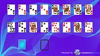 The stock is dealt out one card at a time onto a waste pile, where the top card is always available to be built onto the foundations. The top cards of the reserve piles are available to be built on the foundations, or onto the waste pile if they match the suit and are one rank higher or lower than the top card of the waste pile (wrapping between aces and kings is permitted). Building onto the reserve piles, or moving cards between them, is not permitted. Reserve piles that become exhausted are not refilled.
