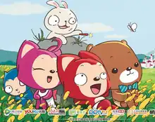 - Peach(桃子; Táozi) - A female pink fox who is Ali's girlfriend. She wears a white dress with a heart on it and a bow on the back. She was also created by Hans after Ali was created.