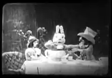 Made by the Edison Manufacturing Company and directed by Edwin S. Porter, the film starred Gladys Hulette as Alice.[1][2] Being a silent film, naturally all of Lewis Carroll's nonsensical prose could not be used, and, being only a one-reel picture, most of Carroll's memorable characters in his original 1865 novel similarly could not be included. What was used in the film was faithful in spirit to Carroll, and in design to the original John Tenniel illustrations. Variety complimented the picture by comparing it favorably to the "foreign" film fantasies then flooding American cinemas.[3]