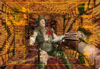This process was also applied to character models, using the same materials as the titles but created as a mix of custom-made models and off-the-shelf kits from a local shop.[10][9][16][26] Each animation were then filmed using the models through the process of stop motion and digitization.[12][19] Patten built replicas of the movies' costumes and props due to being a fan of the franchise. Patten was then digitized using the costume for the Colonial Marine's animations, while the character's HUD portrait is from his likeness.[12][15][9][19] All the graphics were compressed using "JagPEG", an adaptation of the JPEG format by Atari, which compresses art assets into approximately an 8:1 ratio without loss of the picture's quality.[10][18][19] Both the cover art for packaging and the title screen were rendered in LightWave 3D by freelance artist Andrew H. Denton.[2][29]