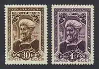 Alisher Nava'i depicted on 1942 USSR stamps to celebrate the 500th anniversary of his birth