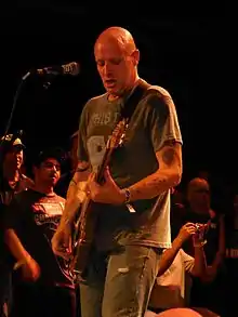 With Aukerman's departure announced in advance, Stevenson took the opportunity to relaunch the band afresh under the name All with singer Dave Smalley, formerly of the Washington, D.C. hardcore band Dag Nasty, meaning for the new band to be the complete fulfillment of the "All" concept.[4][14][22] "I've been wanting to change the name of the band to ALL for eight years", he said during the FinALL tour, adding that it would not feel right to continue as the Descendents without Aukerman and that he wished to shelve the name in case he and Aukerman should wish to use it again at some point.[14] On December 16, 1987, during the recording of the first All album Allroy Sez, Pat McCuistion died when his fishing boat sank during a storm. Stevenson remarked that "He had 15,000 pounds of fish onboard, so I guess you could say he died in heated pursuit of All. He was always the '5th member' of the band, besides being my best friend, next to Milo."[3] With Smalley and later singers Scott Reynolds and the Chad Price, All released eight albums between 1988 and 1995, with Aukerman contributing occasional songwriting and backing vocals. In 1995 Aukerman would return to record Everything Sucks with the band under the Descendents name.