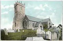 The church is medieval.[2] It is noted for its medieval wall painting of a Lily crucifix one of only two in Europe. The Lily painting was whitewashed out to save it from destruction during the Reformation. It remained hidden until the 19th century, when it was rediscovered.